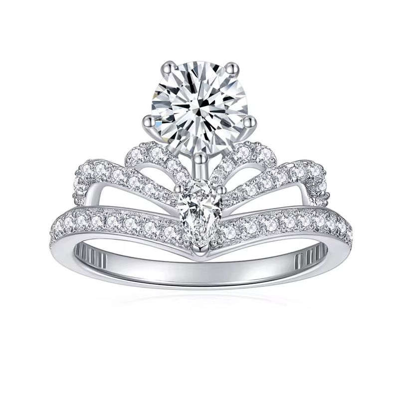 A brilliant 1-carat Moissanite highlighted by a pear-cut stone, shaped in a graceful crown design that delivers pure sparkle and refined luxury.