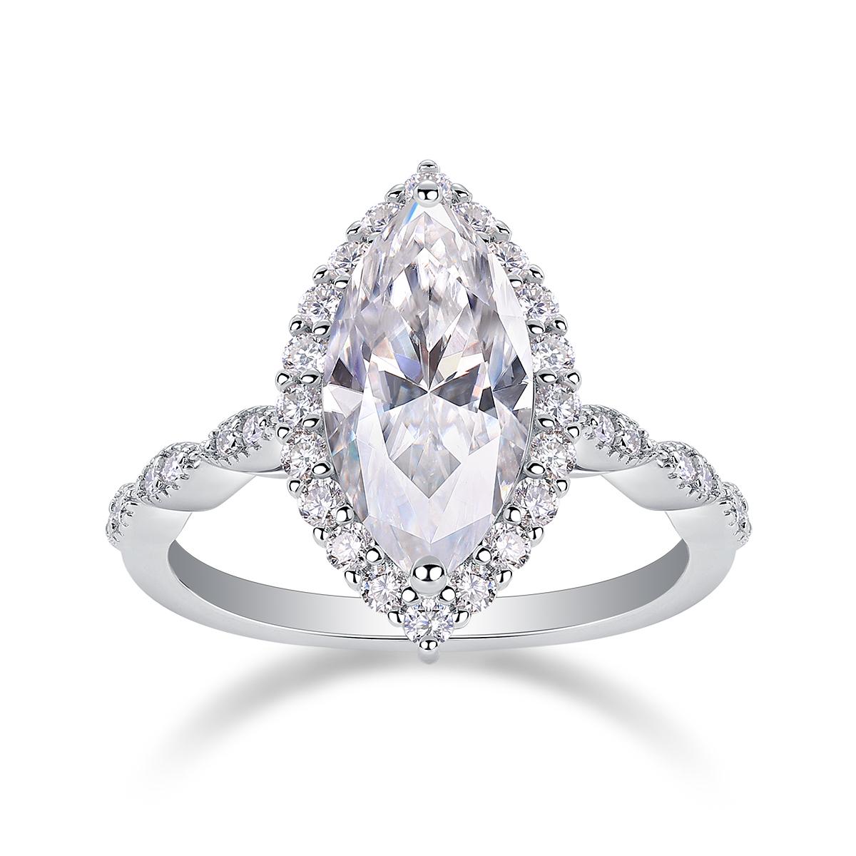 An exquisite 3-carat marquise-cut Moissanite ring