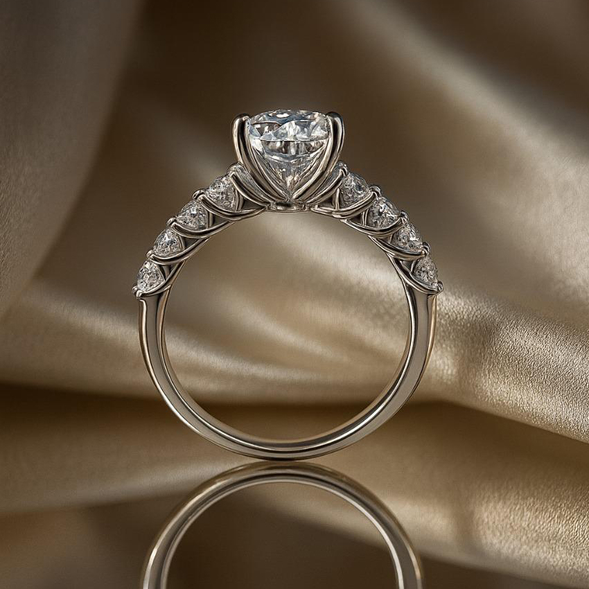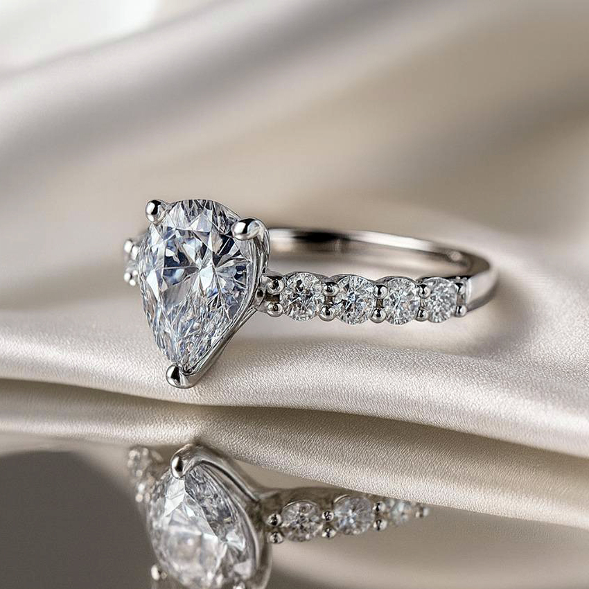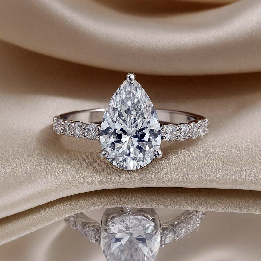 A striking pear-shaped Moissanite diamond set on a pavé 18k gold-plated band, crafted for luminous sophistication.